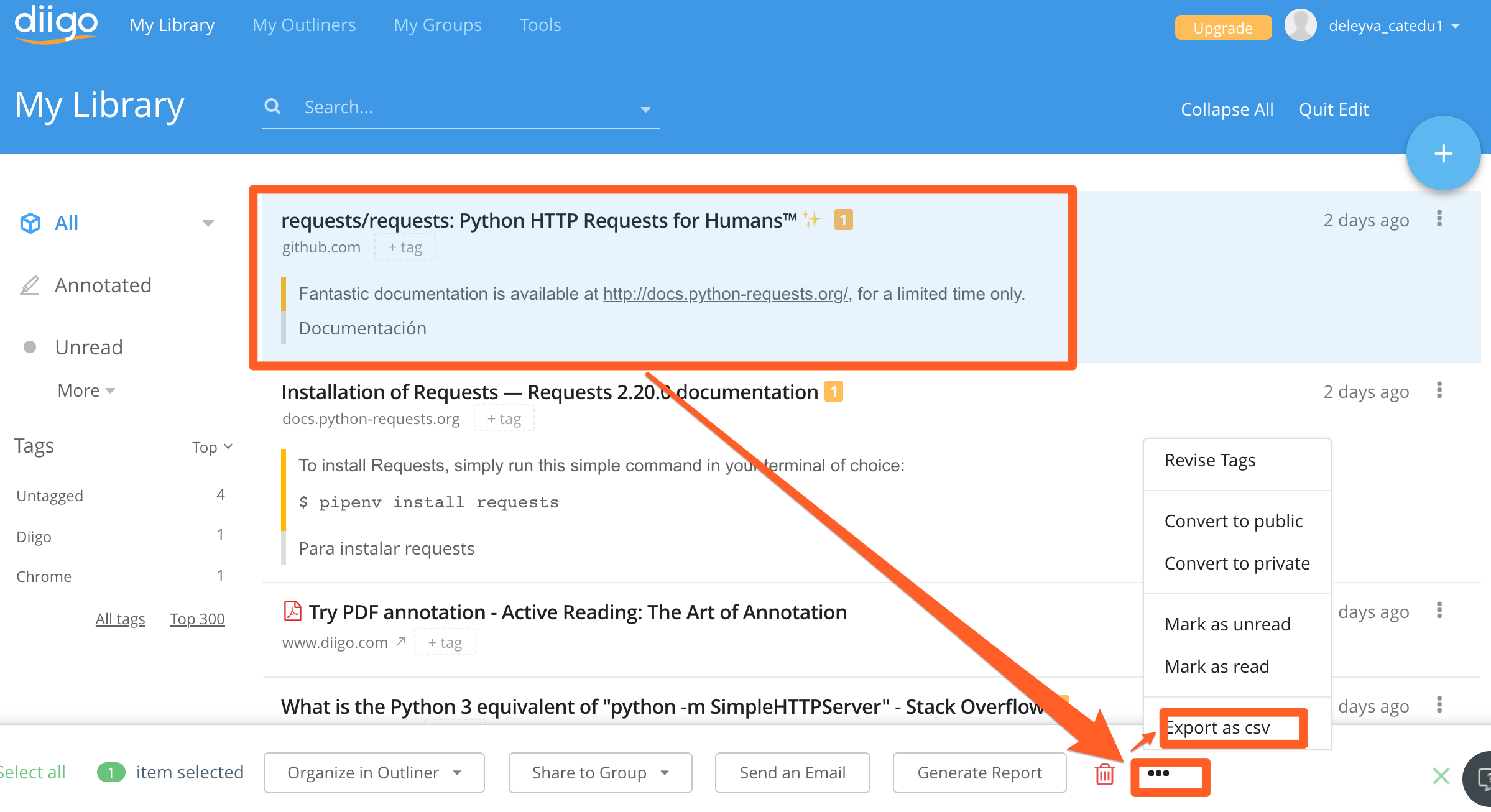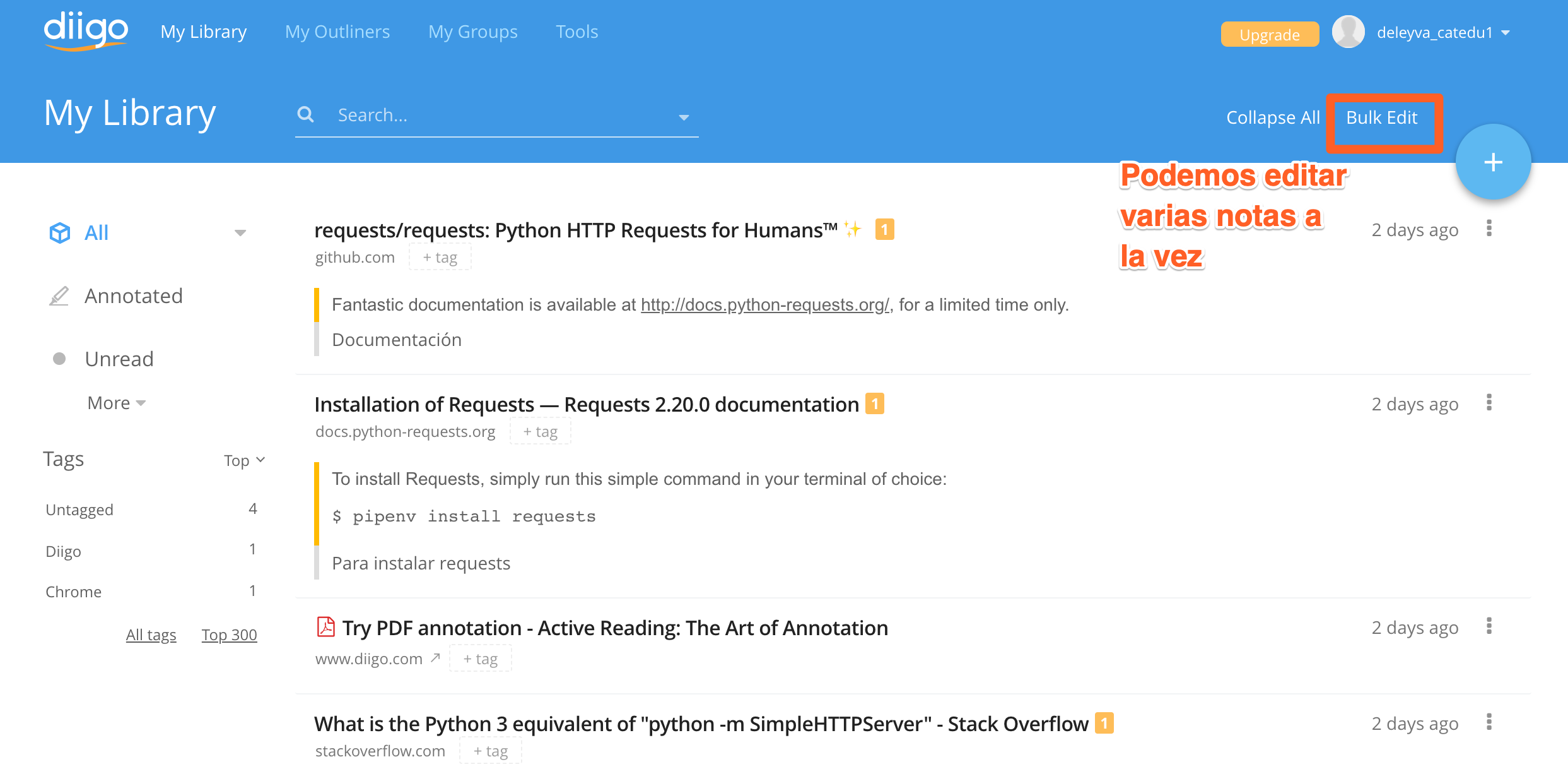 Manejo de diigo