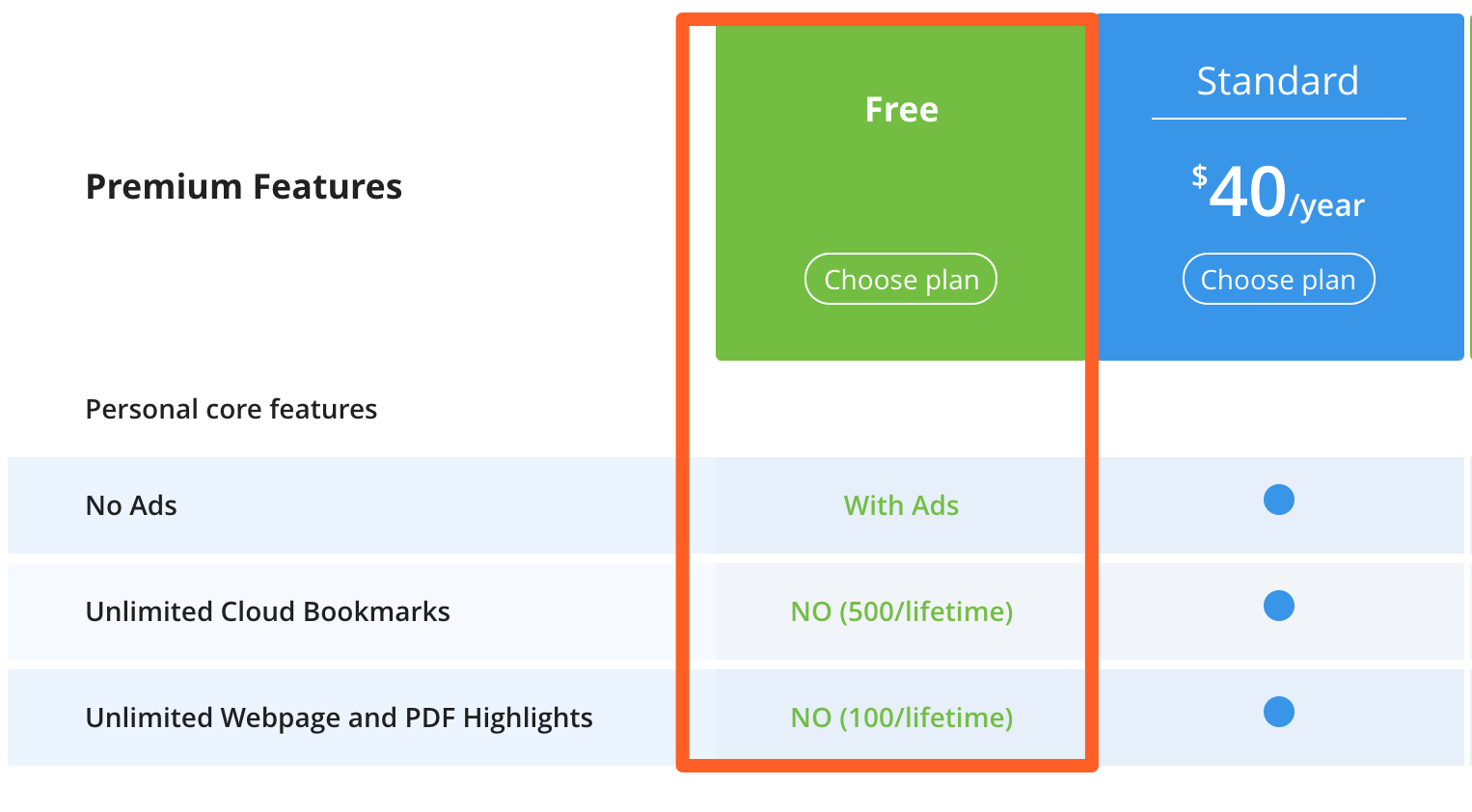Elegimos el plan gratuito que nos permite hasta 500 subrayados y guardar hasta 100 páginas.